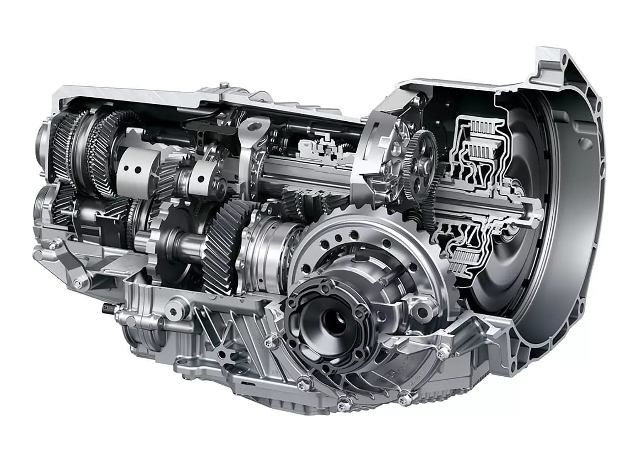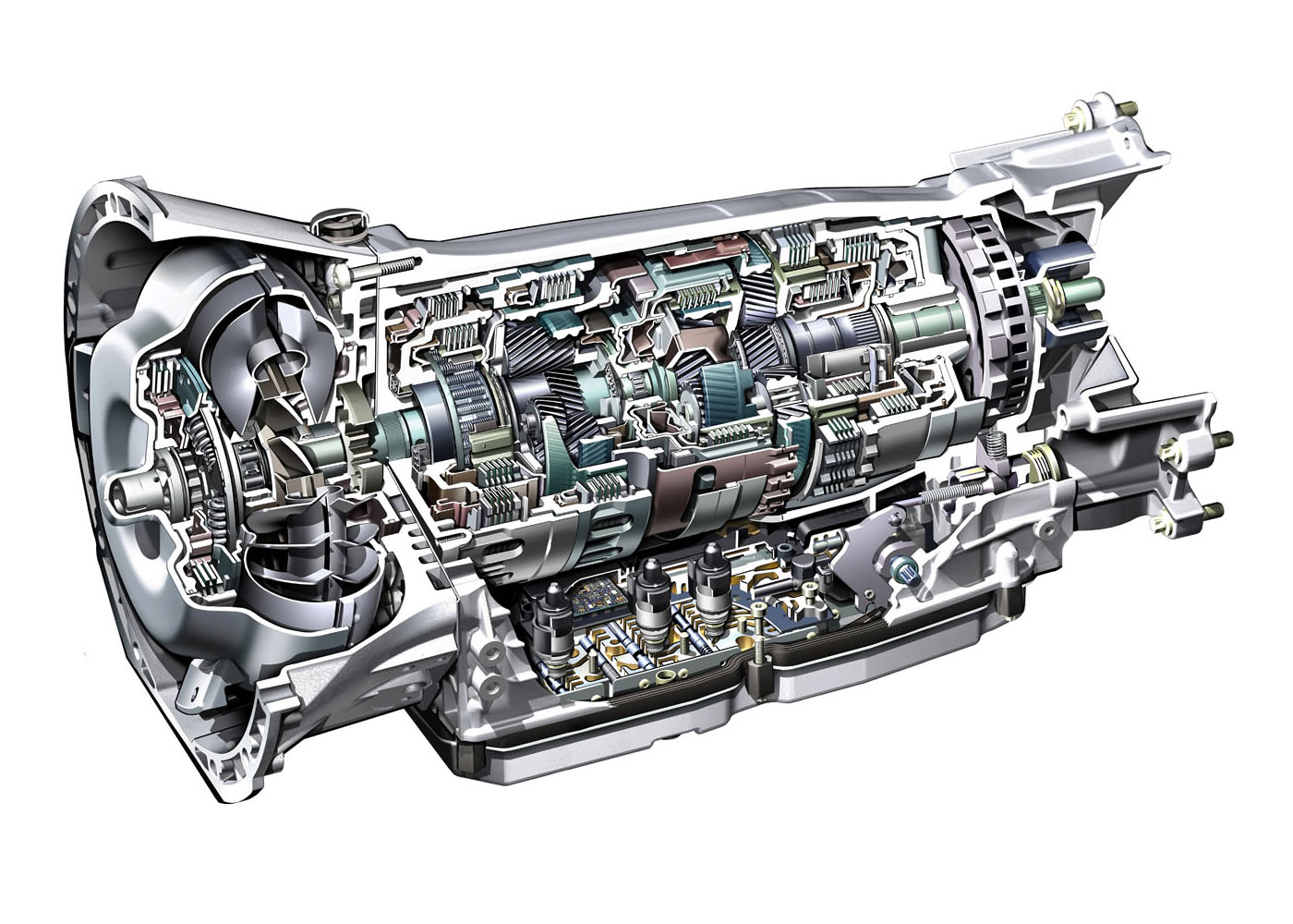 Принципиально коробка автомат состоит из редуктора и гидротрансформатора. Последний работает вместо системы сцепления, обеспечивая плавное, без рывков переключение передач во время движения. Редуктор может включать до восьми ступеней, а переключение идет с помощью нагнетания давления масла, за счет которого происходит переключение. Подобная конструкция максимально сокращает зависимость от электроники.